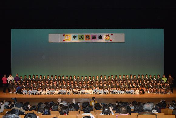 12月6日(日)に田川文化センターにて生活発表会を行いました!! この日のために毎日一生懸命練習に励んでいた子どもたち。テンポが速い動きや少し難しい振り付けに最初は苦戦していましたが、練習を重ねるごとに上手のい踊れるようになっていきました☆また、お友だちと教え合いながら楽しく練習に取り組む姿も見られ、クラスごとに団結力が感じられました!! さて、いよいよ本番を迎えると・・・緊張した表情をしていた子どもたち。しかし、衣装を着るとその表情は一転し、気合いが入り、キリッと凛々しい表情に!!!男の子は元気にかっこよく、女の子はキュートな笑顔でかわいく踊ってくれました♪♪練習の成果を十分に発揮し、堂々と踊る子どもたちの姿に感動させられました☆ また、発表会が終わった後もお部屋では踊りを楽しむ姿が見られ、まだまだ子どもたちの発表会は終わりませんでした♪ 2015 生活発表会1 2015 生活発表会2 2015 生活発表会3 2015 生活発表会4 2015 生活発表会5 2015 生活発表会6 2015 生活発表会7
