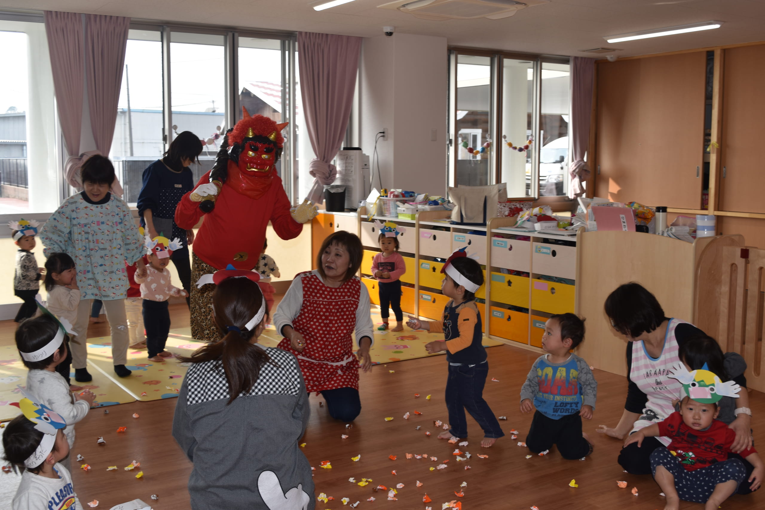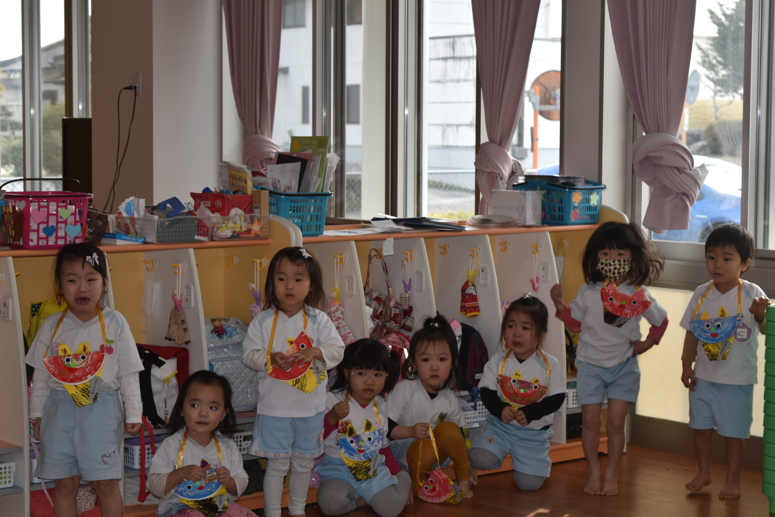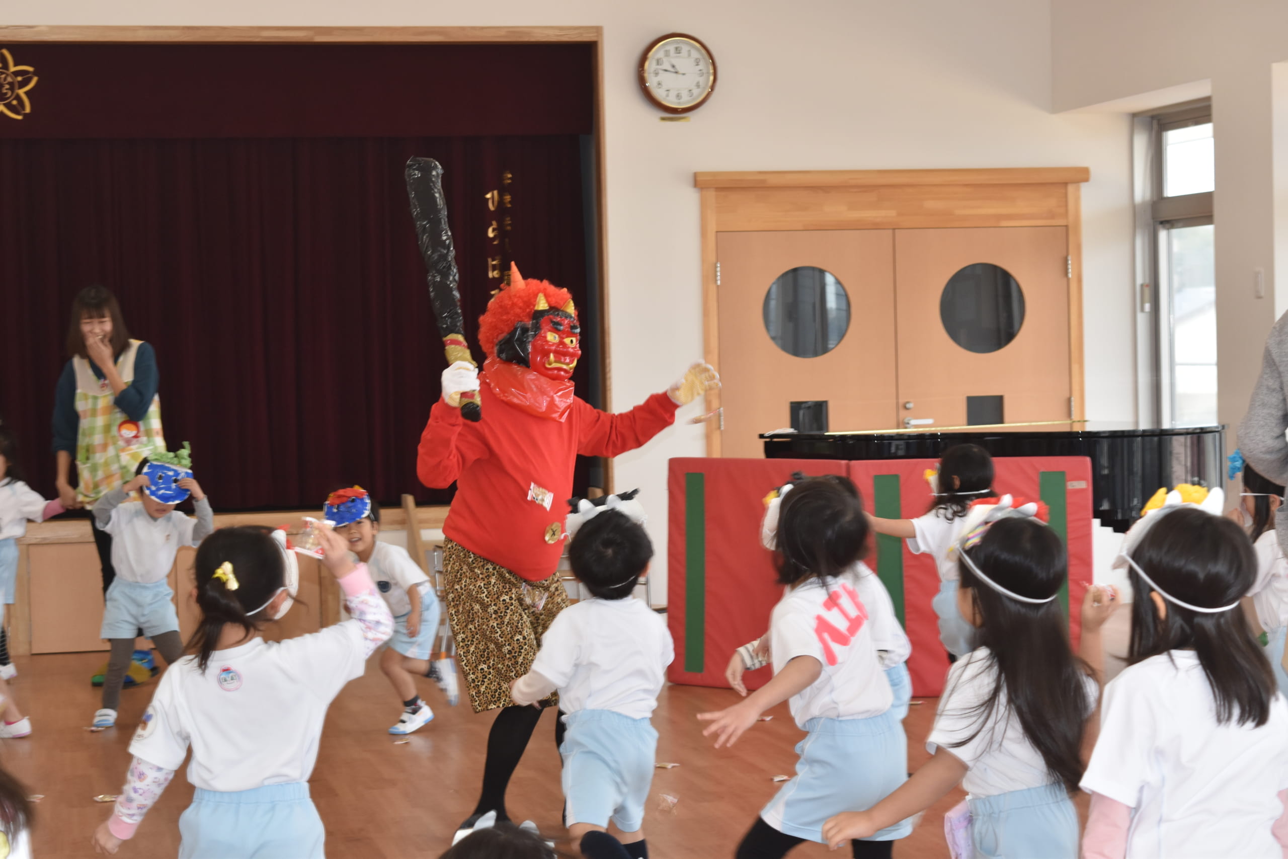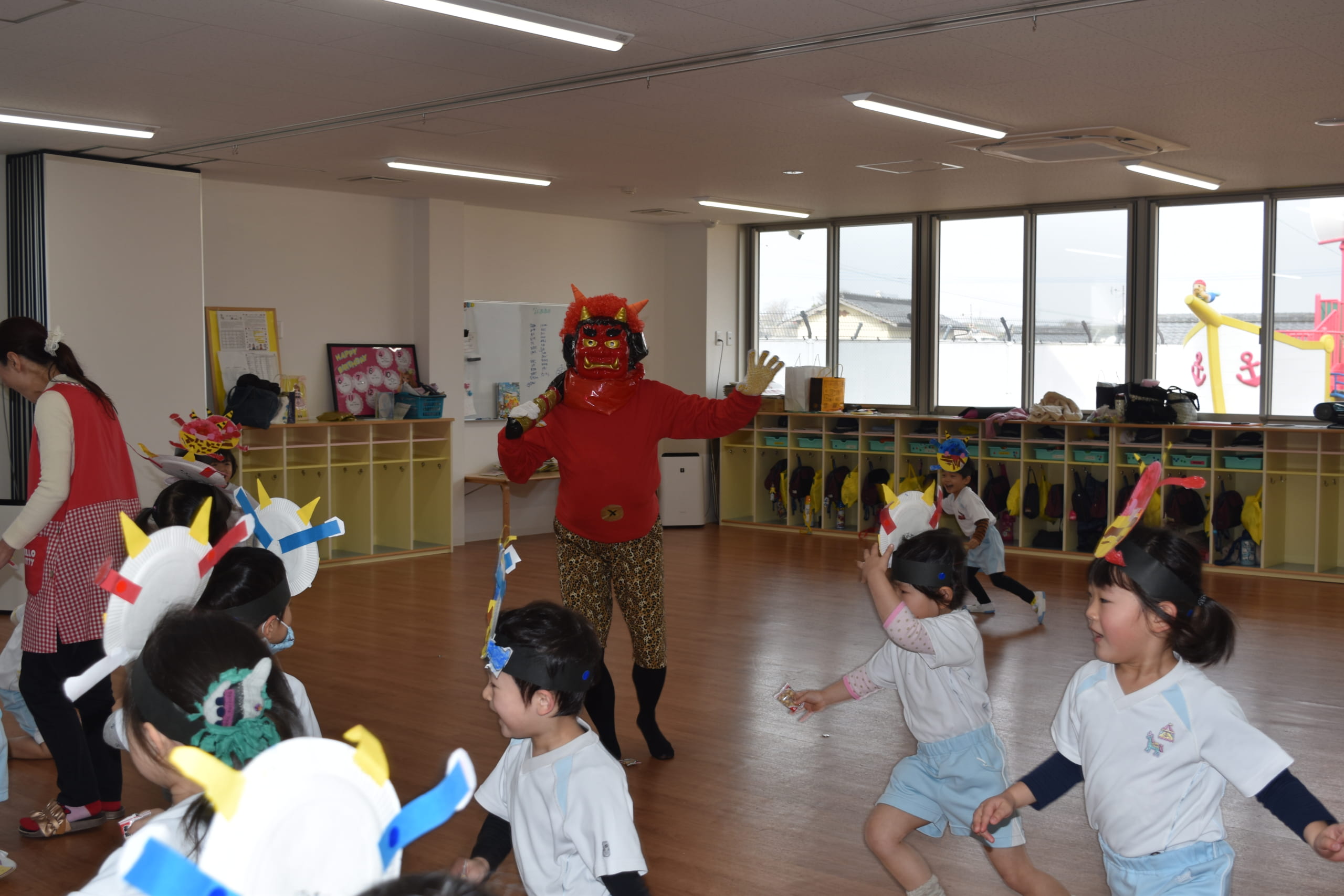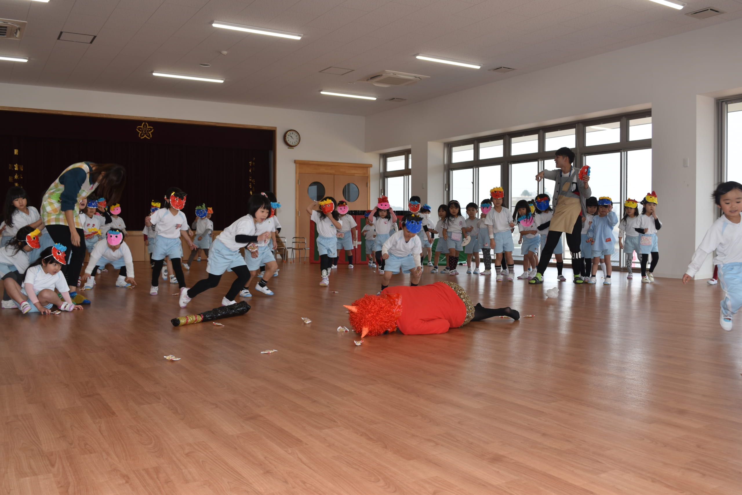 『お友だちみんなで、鬼を退治し、福を招き、無事に終了しました!』