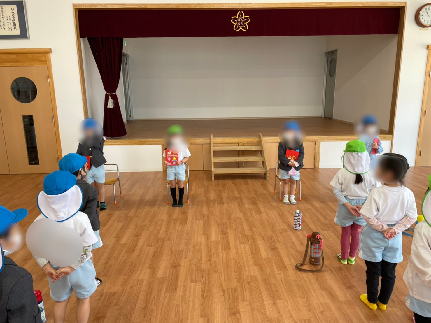 ゆりぐみ・すみれぐみ合同でお誕生会をし、3月生まれのお友だちを心からお祝いしました★