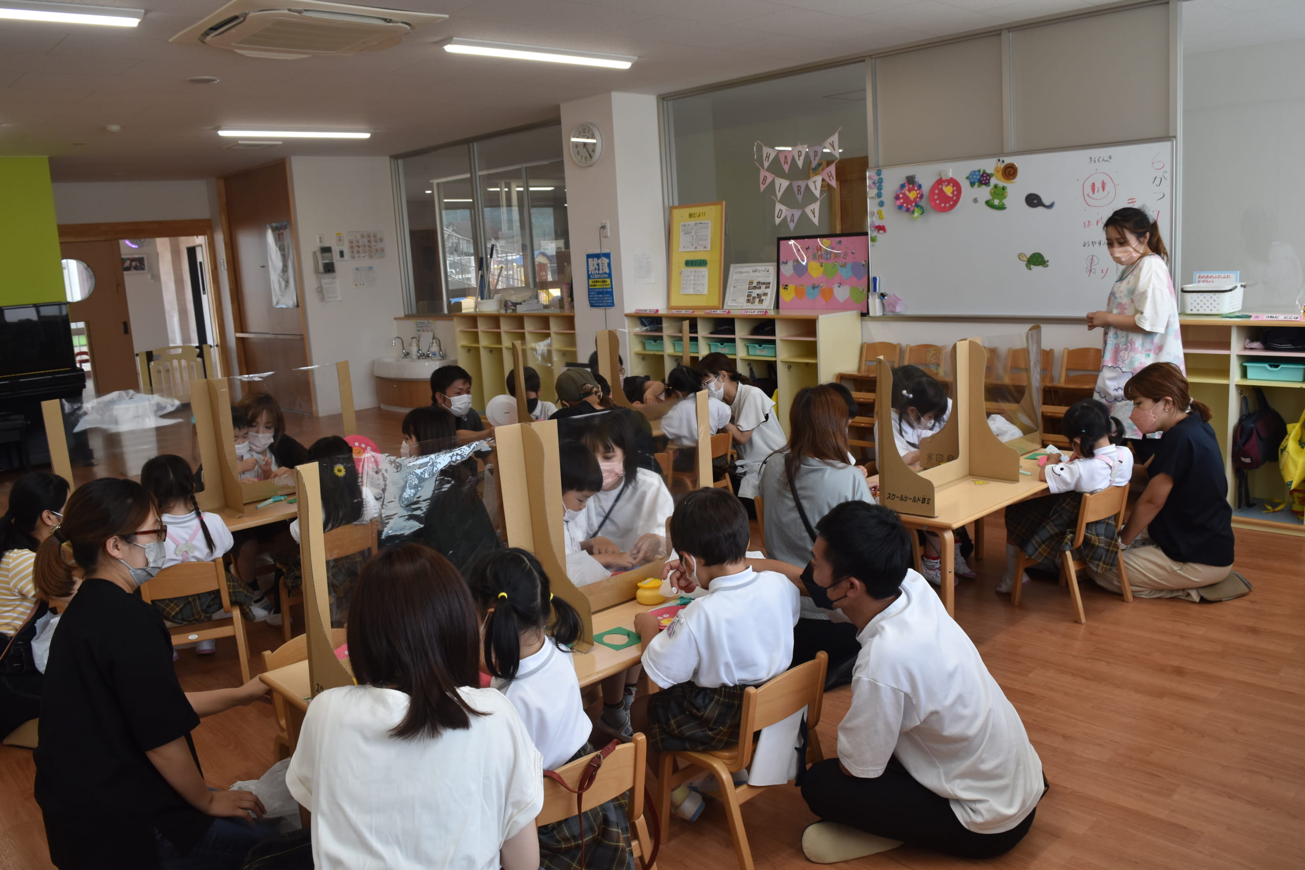 早いものでご入園・ご進級をされて2ヶ月が過ぎ、新しい環境にもなれてきました。園生活でのお子様の様子をご覧頂くため、保育参観を2日間に分けて取り行いました。