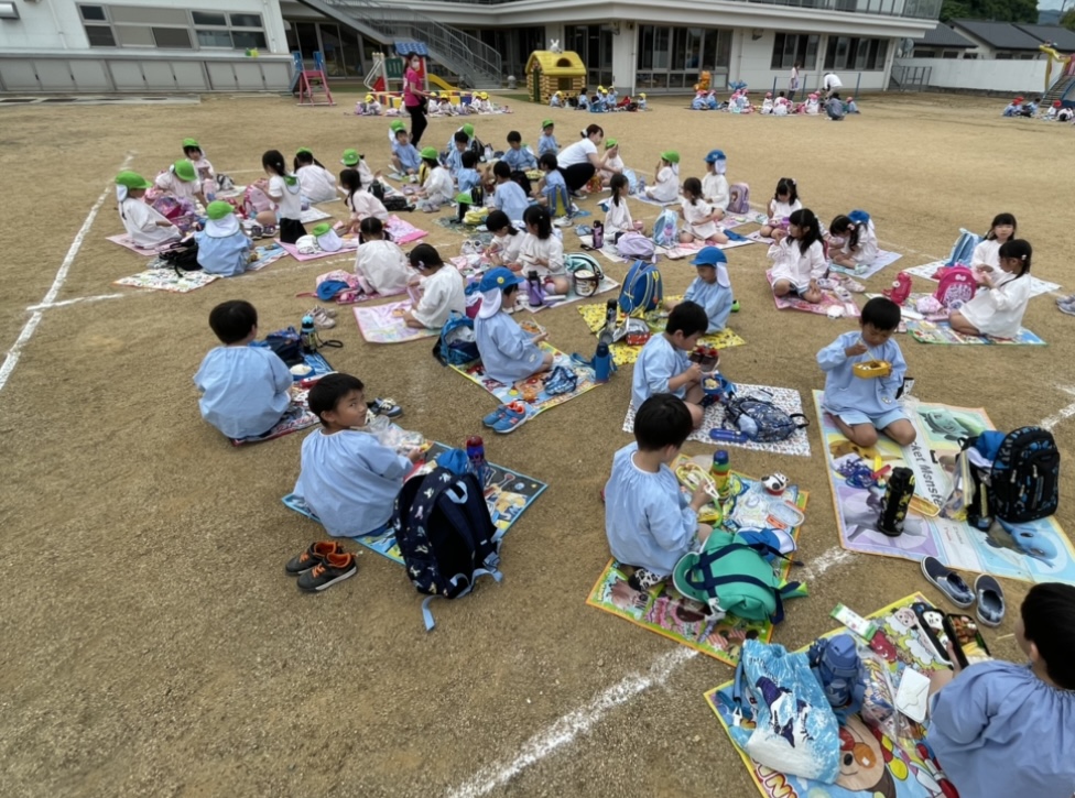 お友達同士でお弁当の中身を見せ合う姿や、普段の園生活の中では味わうことが出来ないお外での食事に終始ウキウキ気分な子どもたちでした。