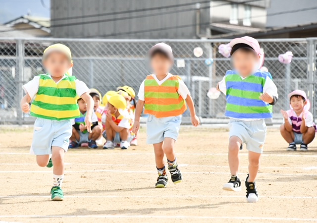 (年少→直線、年中→トラック半周、年長→トラック一周)