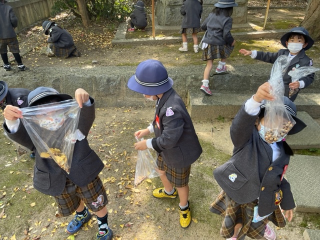 無事に参拝・祈願が終わり、楽しみにしていた”どんぐり拾い”です☆
